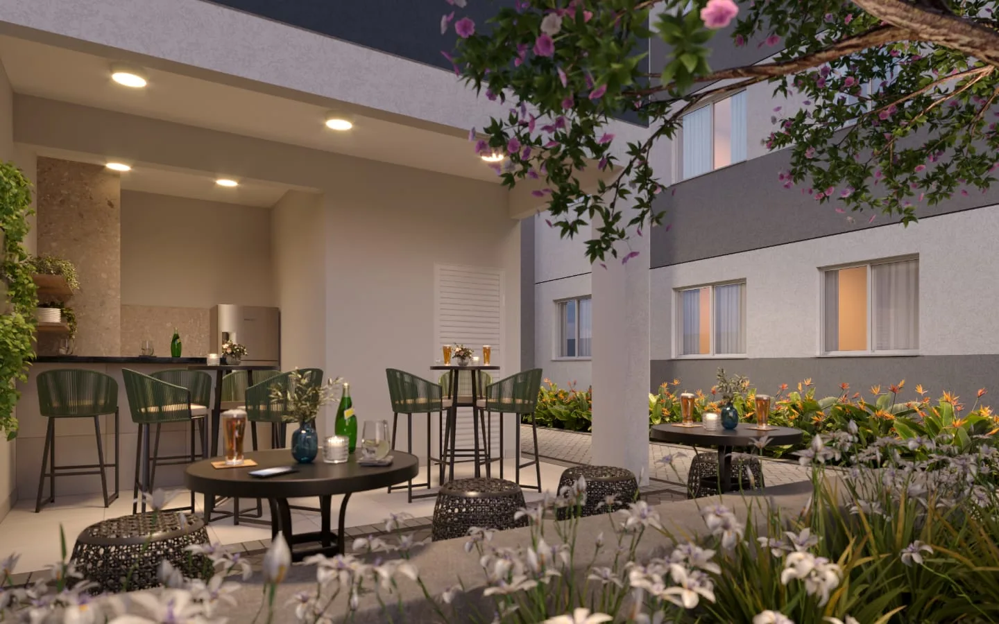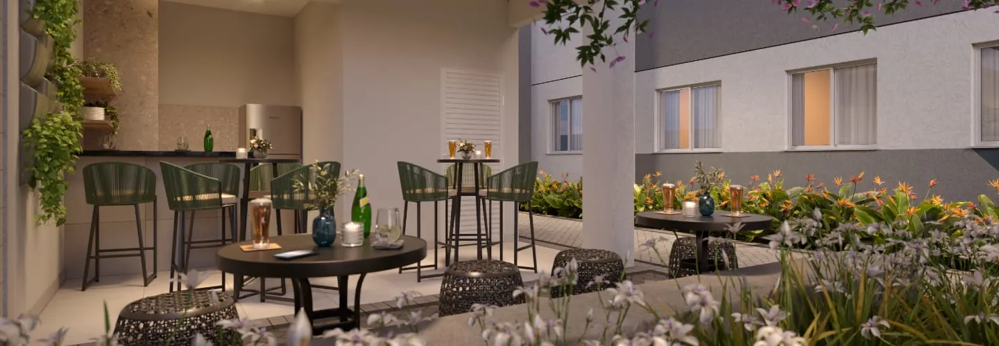 Apartamentos modernos de 1 e 2 dormitórios com opção de terraço privativo, pensados para quem busca praticidade, segurança e qualidade de vida.